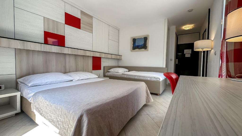 Хотел ”Словенска плажа” 4* – сместен на сама Словенска плажа, со сопствен паркинг: 1/2,1/3 и 1/4 соби, секоја со twc, тв, wi-fi. бесплатно користење на отворениот базен.