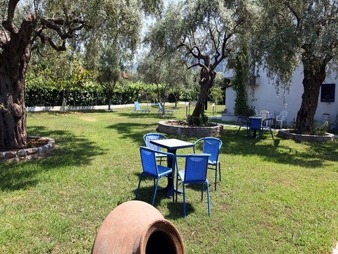 Во градината околу големиот базен со џакузи има лежалки и чадори и игралиште за помладите гости.